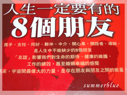 在你的人生當中有這樣貼心的八位朋友嗎?如果有,那恭禧你的生命是如此的美好!如果沒有,那想想你的生命是否充滿挫折無奈?