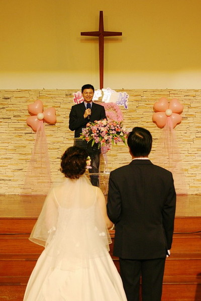 一切都如此神奇的按照我的橋段安排!當主持人說著歡迎介紹人也是他們的『長輩』來為新人祝福時,我起身的那一刻主持人馬上嚇一跳的確定『你真的是介紹人嗎?不是開玩笑的吧!』^^我也只能點頭微笑的確認『沒有開玩笑!』等我走上講台,再接上我的開場白之後,我想所有來賓應該都會認為這是套好招的吧..!