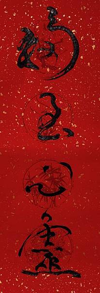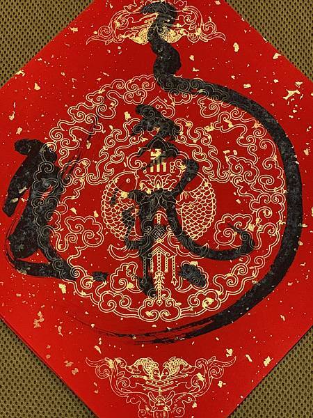 結果到了學長的工作室時,桌上己經放了寫好的『忘機』字畫,還有『福氣』、『福至心靈』、『忘機』等閃著金黃亮光有著大紅底色的春聯。學長說:知道我要裱框,特地寫了一幅的字畫要送我。一時喜悅之情無以言喻~~